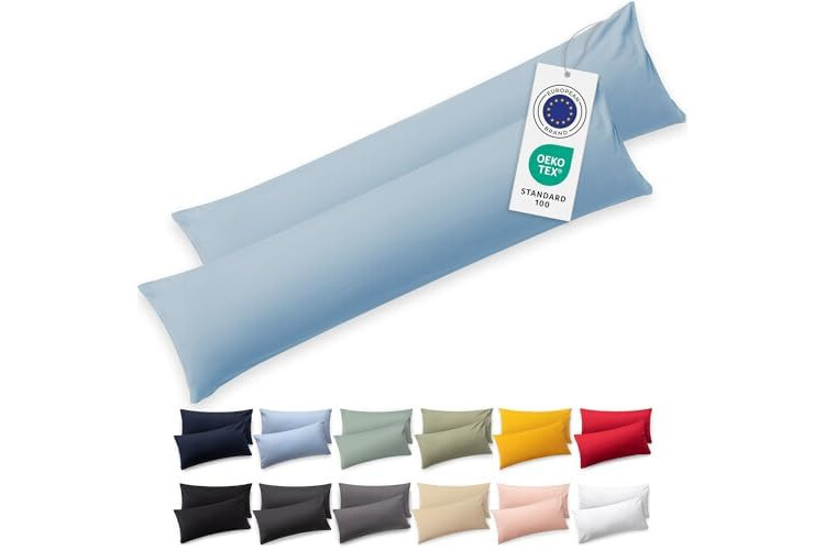 Blumtal Funda de Almohada 40x145 cm - 100% algodón - Azul Claro - Juego de 2 Fundas de Almohada 40x145 in Jersey con Cremallera, Fundas de cojín con Certificado Oeko-Tex, para Almohadas y Cojines