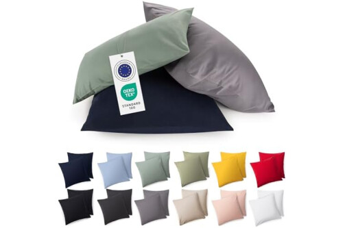 12 Colores Y 6 Tamaños: nuestra funda de almohada premium está disponible en 12 colores modernos y 6 tamaños diferentes. Por lo tanto, hay una funda adecuada para cada persona.