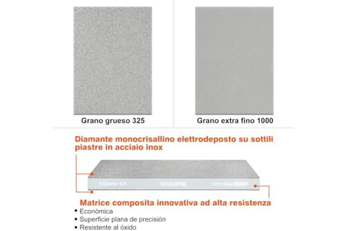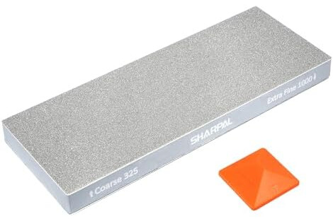 SHARPAL 168H Piedra de Afilado de Diamante Grande 201 x 75mm de Doble Grano – Grano Grueso 325 y Extra Fino 1000, Piedra de Afilar Monocristalina Profesional con Base Antideslizante y Guía de Ángulo