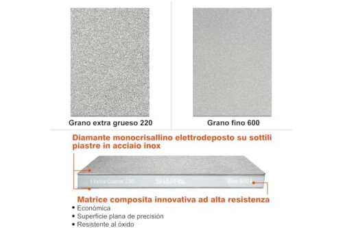 SHARPAL 169H Piedra de Afilar Diamante Extra-Gruesa 220 / Fina 600 Doble Cara – Piedra de afilar de diamante monocristalino (201 x 75 mm) afilador profesional con guía de ángulos y base antideslizante