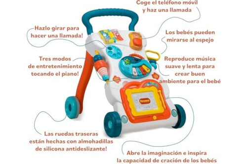 ✅ Andador con Música acompañará a tu bebé en los primeros pasos. Tiene dos funcionalidades: Modo paseo y modo juego. En el panel delantero existen varios juegos para que los bebés estimulen sus habilidades e interactúen.