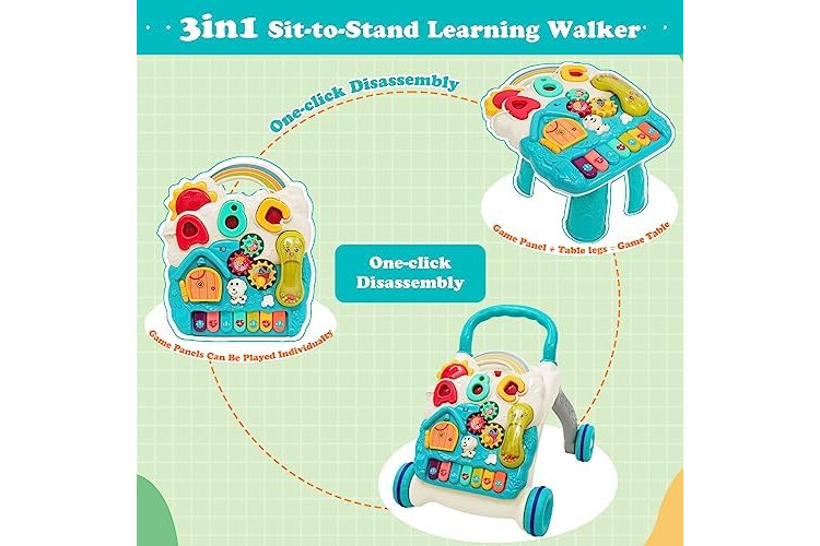 Andador Bebés, 3 en 1 Caminador Bebe de juguetes de entretenimiento, Ruedas con velocidad regulable, Tablero de Juego Extraíble, para bebés de 12 a 36 meses