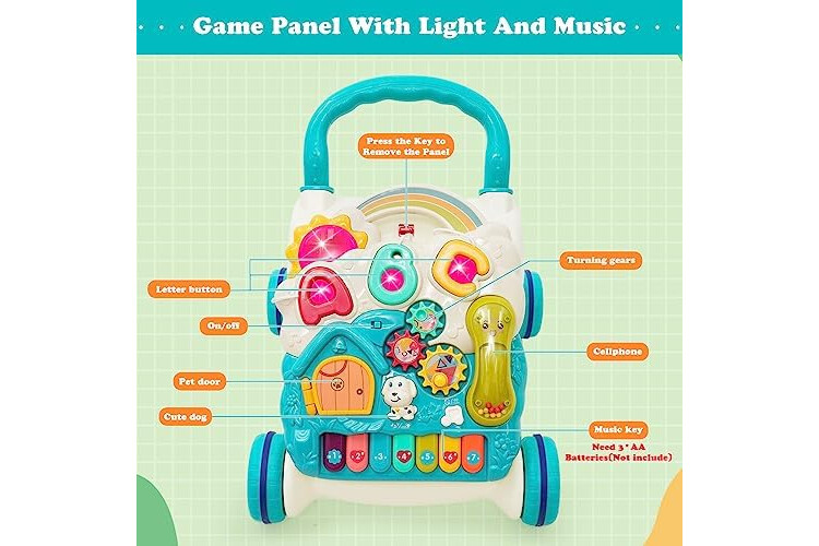 【Andador multifuncional para bebés】 Nuestro juguete andador para bebés puede mejorar la coordinación y la fuerza de los niños pequeños empujando el andador hacia adelante. Su diseño 3 en 1 se convierte fácilmente de un panel activo y extraíble a un andador o se cuelga en cualquier lugar, manteniéndolos ocupados en cada etapa.