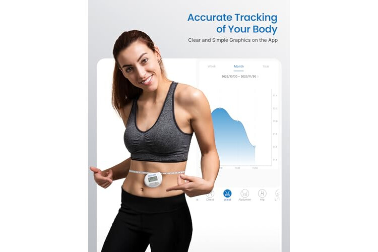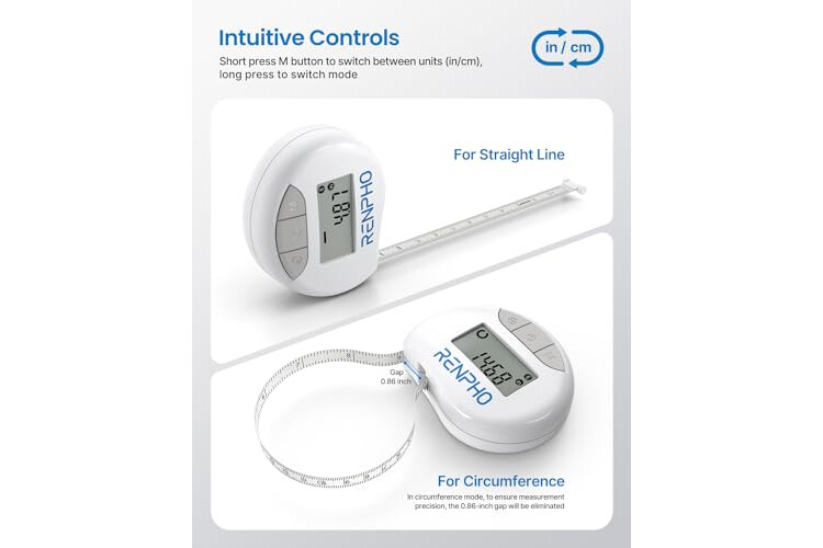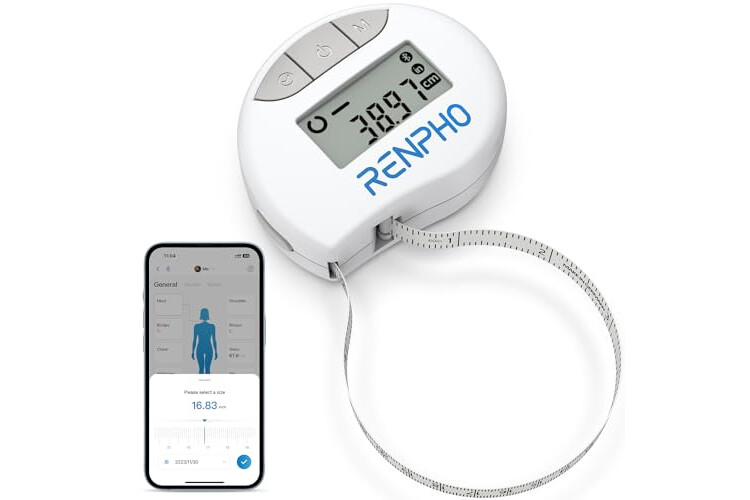 Cinta Métrica Inteligente con Aplicación, Cintas Métricas Bluetooth RENPHO para Medir el Cuerpo, Fitness, Retractable, Mide la Circunferencia de la Parte del Cuerpo, Pulgadas y CM