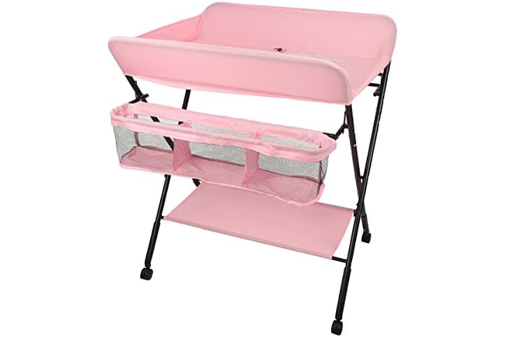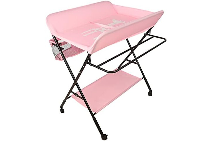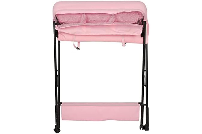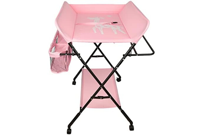 Cambiador de Pañales Plegable con Ruedas y Espacio de Almacenamiento Cambiador para Bebé Altura Ajustable,Plegable con cinturón de seguridad y compartimentos de almacenamiento