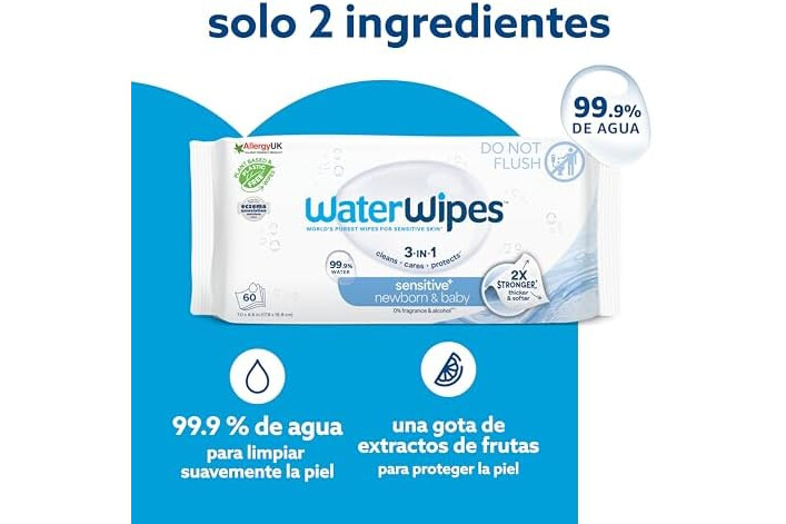 2 VECES MÁS FUERTE: Mejoradas para una mayor versatilidad, las toallitas WaterWipes son ahora más gruesas, suaves y 2 veces más resistentes para hacer frente a los desastres más difíciles, manteniendo la misma pureza de confianza.