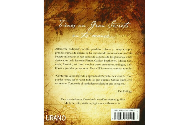 El Gran Secreto siempre ha estado presente de forma fragmentada en las tradiciones orales, en la literatura, en las religiones y en las distintas filosofías de todos los tiempos. Por primera vez, todos esos componentes se ha reunido en una increíble revelación que transformará la vida de todo aquel que la experimente. En este libro aprenderás a utilizar El Secreto en todos los aspectos de tu vida: dinero, salud, relaciones, felicidad y en todas tus interacciones con el mundo. Empezarás a entender el poder oculto y sin explotar que hay en tu interior. Esta revelación te aportará felicidad en todas las áreas de tu vida. El Secreto encierra la sabiduría de los grandes maestros actuales, hombres y mujeres que lo han utilizado para conseguir salud, fortuna y felicidad. Han aplicado el conocimiento de El Secreto y nos revelan increíbles historias de curaciones, de generación de grandes riquezas, de superación de obstáculos y de conseguir lo que muchos calificarían de imposible.