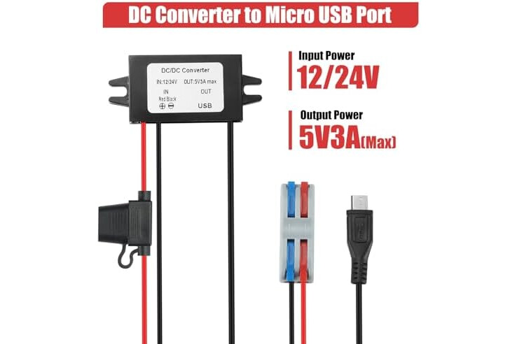 DC 12V 24V a 5V 3A Micro USB: Este adaptador reductor tiene 1 puerto de carga micro USB, convertidor reductor DC a DC interruptor integrado módulo estabilizador de voltaje delgado, con tasa de conversión de hasta 96%