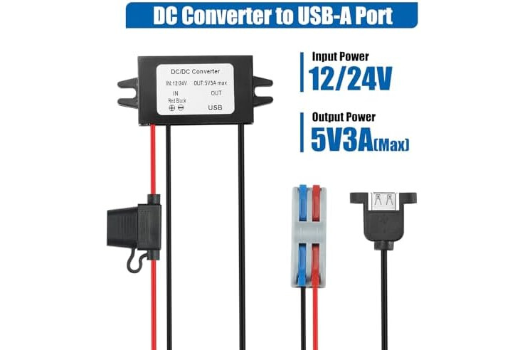 12V/24V a 5V USB-AF Convertidor DC-DC Step Down Adaptador 12V/24V a 5V 3A Convertidor Controlador con Cable USB AF 34 CM para Equipos CNC Interruptor Panel Fotovoltaico etc.