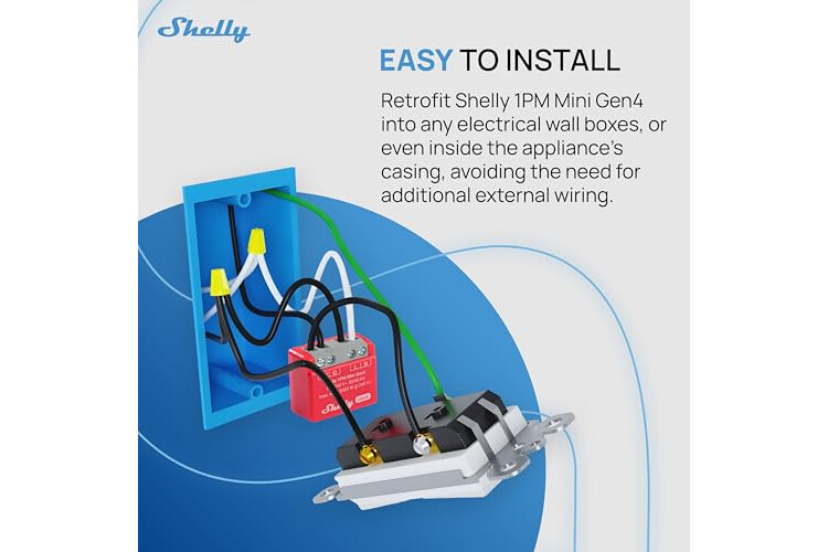 𝑴𝒊𝒏𝒊 𝒓𝒆𝒍𝒆́ 𝒇𝒂́𝒄𝒊𝒍 𝒅𝒆 𝒊𝒏𝒔𝒕𝒂𝒍𝒂𝒓 – Pequeño y práctico (29x34x16 mm), el Shelly 1PM Mini Gen4 es ideal para instalar detrás de cualquier interruptor y en cualquier caja de empotrar estándar en menos de 10 minutos