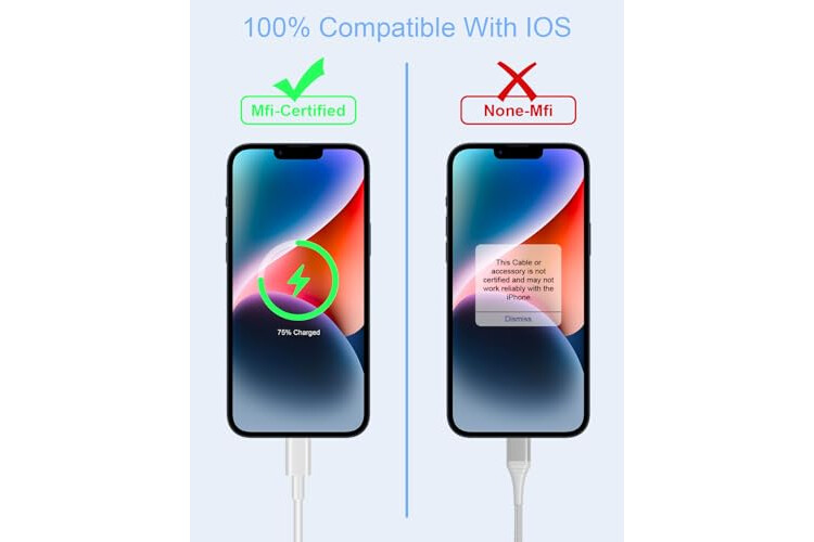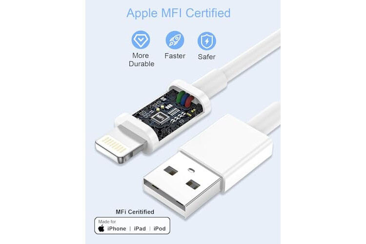 MFi Certificado Cable Lightning: El cable usb iPhone ha superado la certificación MFi para garantizar una compatibilidad del 100% con iPhone, iPad, iPod. La certificación MFi y las estrictas pruebas de calidad pueden garantizar que los dispositivos iOS se cargan y transmiten de forma segura a la velocidad más rápida. Con este cable cargador, puedes disfrutar de una rápida transferencia de datos, sincronización y carga. Sin problemas de compatibilidad ni mensajes de error emergentes.