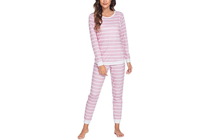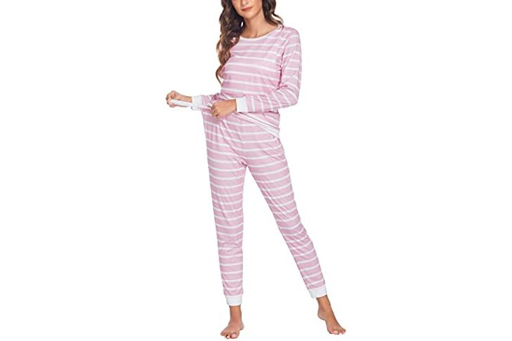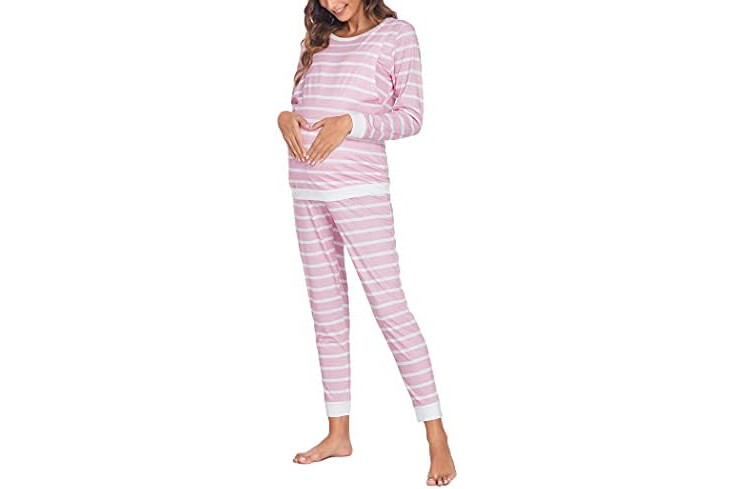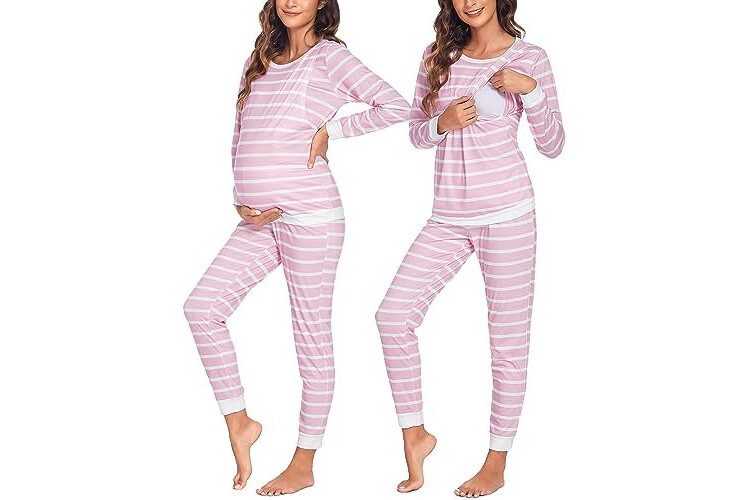 Ekouaer Pijama de Lactancia para Mujer de Manga Larga a Rayas trmico para Invierno para Embarazo Lactancia, S-XXL