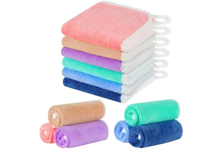 6 paños para lavar la cara del bebé: verde, azul, azul oscuro, rosa, morado y caqui.