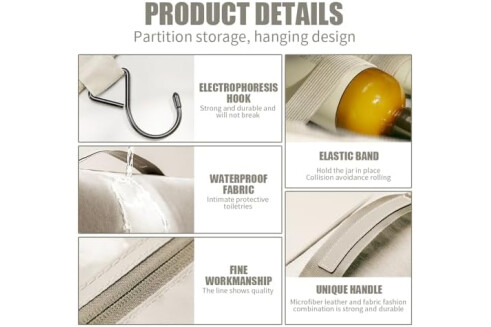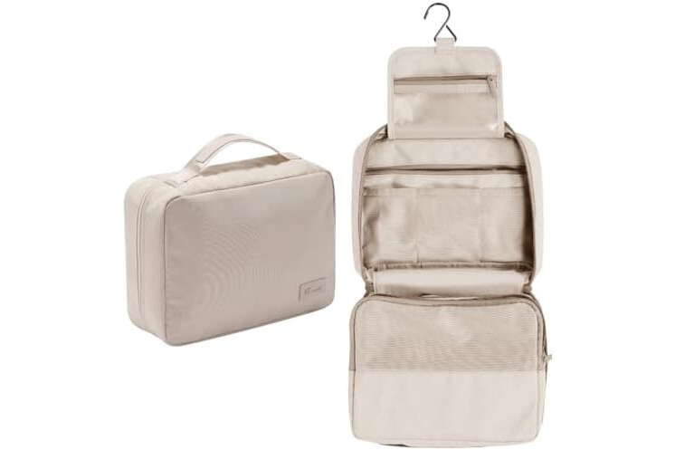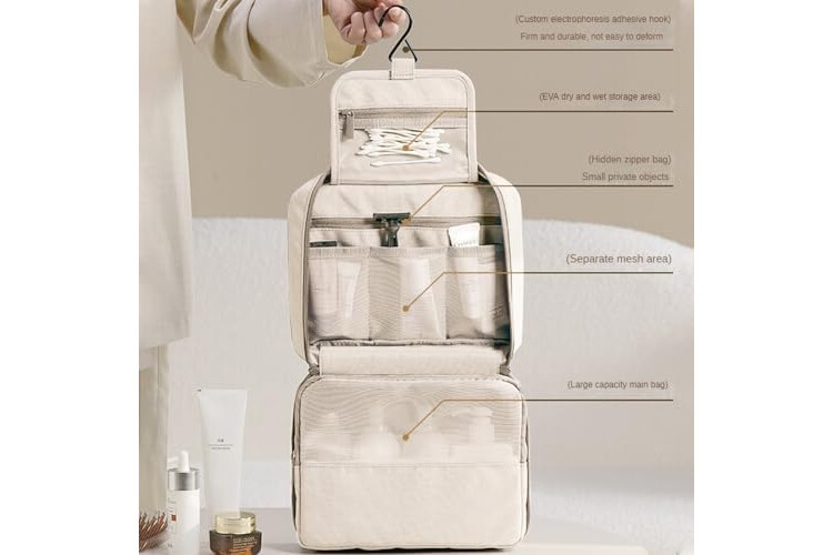 Neceser Grande para Mujer y Hombre, Gran Neceser para Colgar, Neceser de cosméticos, Bolsa de Lavado para Mujeres y niñas, Color Negro, Negro, Fashion-Beige