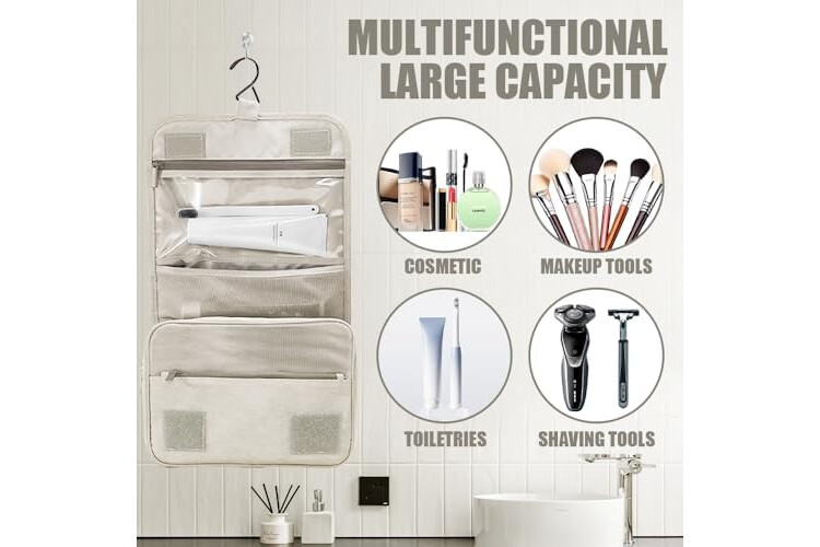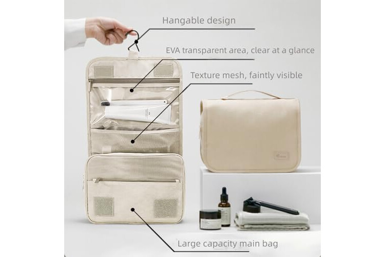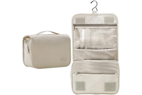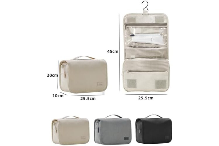 Neceser Grande para Mujer y Hombre, Gran Neceser para Colgar, Neceser de cosméticos, Bolsa de Lavado para Mujeres y niñas, Color Negro, Negro, Fashion-Beige