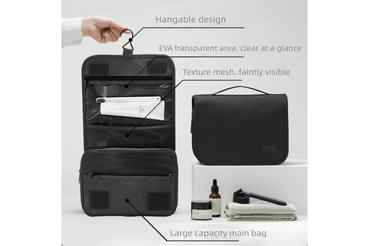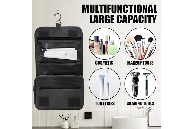 Bolsa Aseo Neceser Mujer Neceser hombreViaje,Bolsa de Aseo con Gancho Colgante para Hombre y Mujer Accesorios de Viaje-Black
