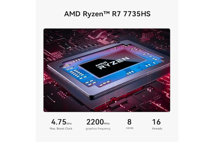【Potente AMD Ryzen 7 7735HS】Con el procesador AMD Ryzen 7 7735HS de 8 núcleos, 16 hilos y 16 MB de caché inteligente, SER5 MAX ofrece un rendimiento excepcional con velocidades de reloj de hasta 4,75 GHz. Gracias a la arquitectura RDNA2, aprovecha al máximo la potente función para gestionar fácilmente diversas tareas múltiples complejas, ejecutando juegos 3A con fluidez. La tarjeta gráfica AMD Radeon integrada, con 12 núcleos y 2200 MHz de velocidad de reloj, garantiza una representación gráfica fluida y capacidades multitarea.