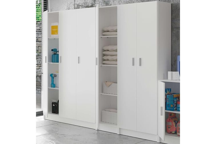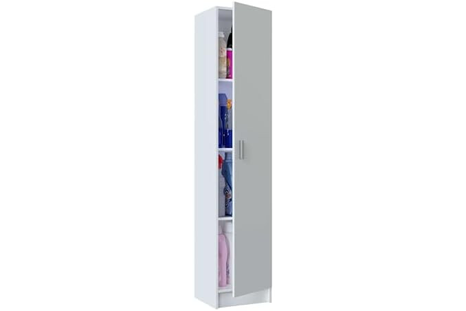 Perfecto para utilizar como armario de limpieza, en el cuarto de la lavadora, en baños o usarlo como despensa o en garaje.