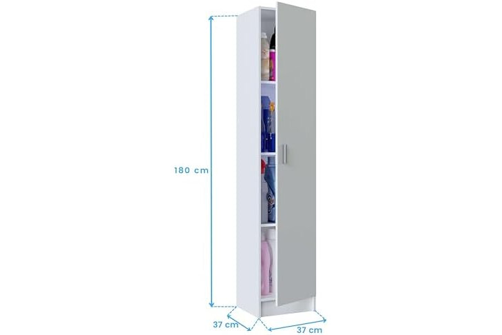 Medidas armario multiusos: 180 cm (altura) x 37 cm (ancho) x 37 cm (fondo).