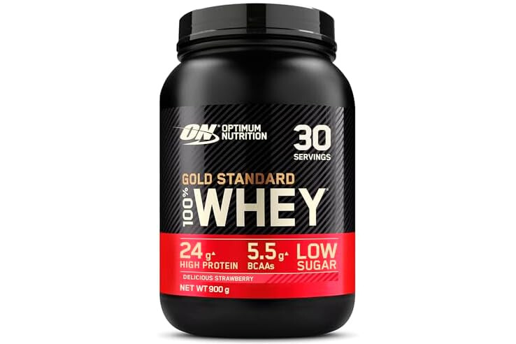 Optimum Nutrition Gold Standard 100% Whey, Proteína en Polvo, Sabor Fresa Deliciosa, 900g, 30 Servicios
