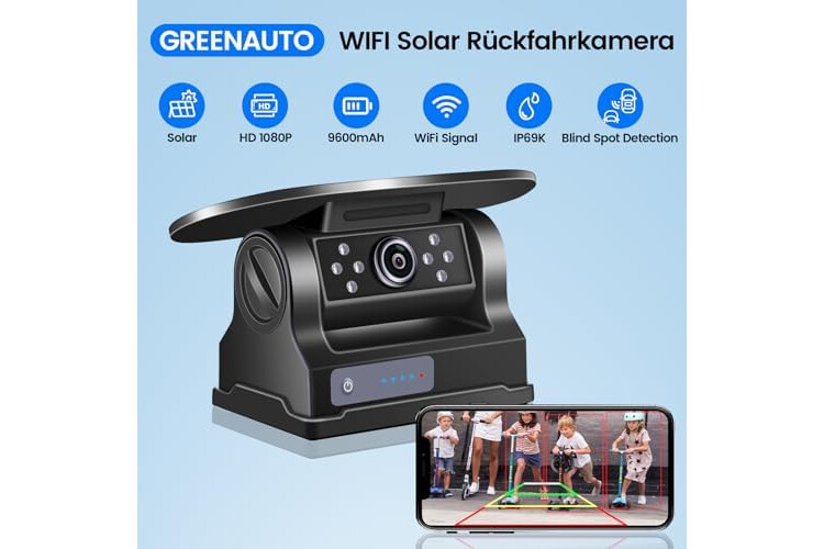 Cámara de Marcha atrás WiFi Solar, cámara de Marcha atrás magnética inalámbrica, FHD 1080P IR visión Nocturna IP69K Impermeable, para iPhone Android, Ayuda de Aparcamiento, Autocaravana