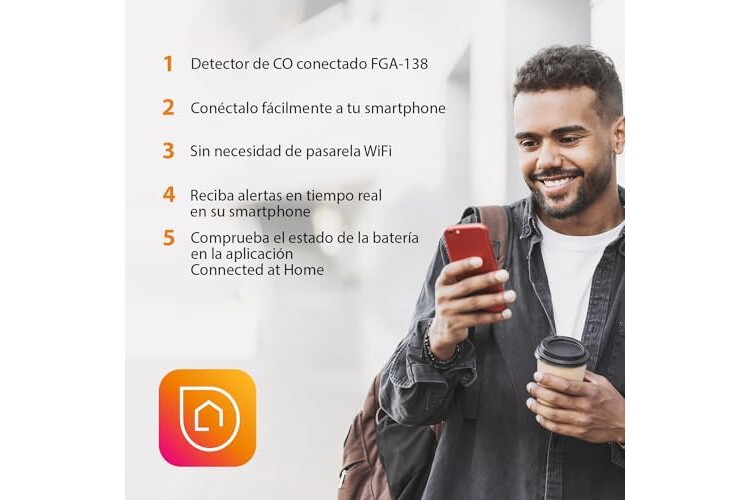 Descargue las aplicaciones Smartlife o Connected at Home (en iOS y Android, y compatibles con redes de 2.4 GHz) para que usted y sus contactos reciban notificaciones en su smartphone en caso de peligro; no necesita interfaz WiFi