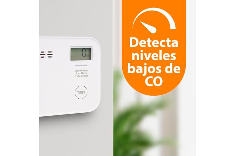 Pantalla e indicador LED: el color del indicador luminoso te indica si funciona, si funciona mal, si está llegando al final de su vida útil o si detecta CO. La pantalla también muestra la cantidad de CO en el aire, si la hay.