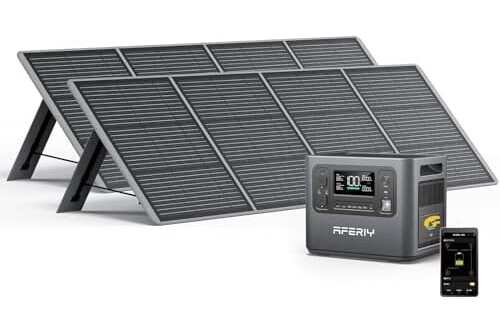 AFERIY Generador Solar 2400 W Con 2 Paneles Solares de 200 W, Estación de Alimentación Portátil de 2048 Wh (Pico de 4800 W), Batería LiFePO4, 220 V-240 V, Panel Solar Plegable Con USB