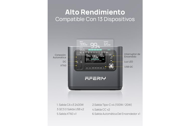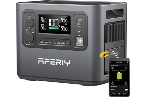 AFERIY - Generador Eléctrico Portátil De 2400 W, 2048 Wh Batería Nómada Lifepo4, Carga En 1,5 H, Toma Ue 220-240 V, Función UPS, Estación Eléctrica Portátil Para Camping, Hogar, Oficina, 7 Años De