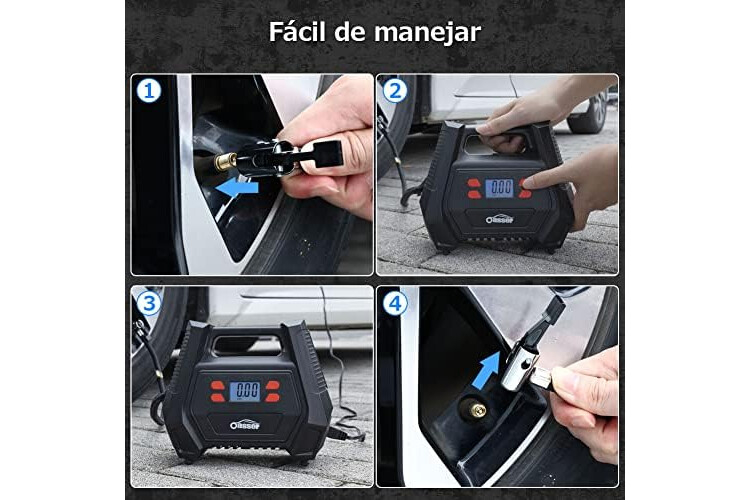Diseño ergonómico: Inflador ruedas coche con asa, Compresor aire portatil, ranura de almacenamiento del tubo de gas in...