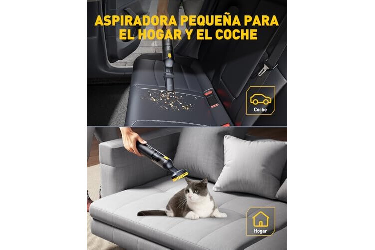 【Aspiradora coche portátil ultraligera】Esta aspiradora inalámbrica pesa solo 461 g, el equivalente a una botella de agua. Su diseño inalámbrico te permite limpiar fácilmente cada rincón sin preocuparte por cables enred...
