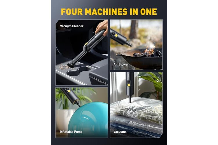 【Versátil aspirador de mano con diseño 4 en 1】No es solo una aspiradora, esta aspiradora de mano inalámbrica viene con una variedad de boquillas, lo que le permite soplar, aspirar e inflar para diversas tareas de limpieza y mantenimiento. Equipado con una variedad de accesorios que pueden cumplir con el soplado, succión, inflado y bombeo de una variedad de escenarios para su uso.