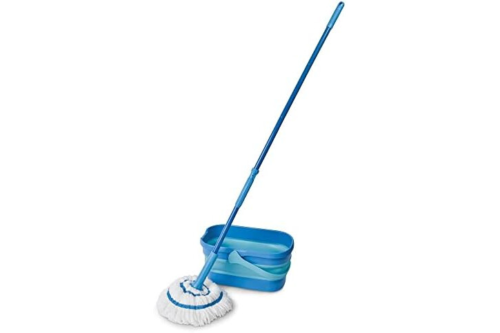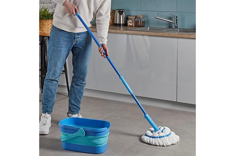 Spontex Twist Mop Kit Set de fregona y cubo - Fregona de microfibras con sistema de autoescurrido incorporado - Cubo plegable de 10L - Limpia suelos laminados, de madera y baldosas