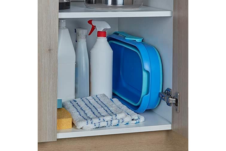 DISEÑO ULTRA COMPACTO: El mango telescópico de diseño inteligente puede desmontarse en 5 piezas y guardarse en el cubo plegable de 10 l para lograr un almacenamiento eficiente