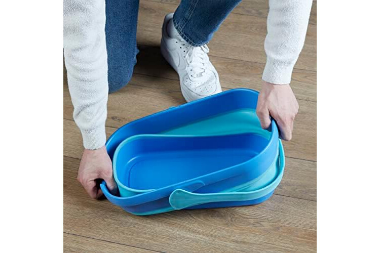 MATERIALES RECICLADOS: El cubo plegable está fabricado con un 30% de plástico reciclado, y el embalaje, con hasta un 90% de materiales reciclados