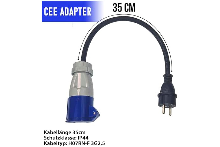 Adaptador CEE Schuko a Enchufe CEE 35 cm – Cable para Autocaravana, Camping y Caravana – IP44, H07RN-F 3G2,5, 230V/16A