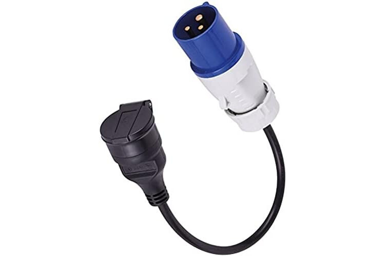 • Clavija schuko + toma CEE (caravan, sitio de construcción, barco, camper, camping)
