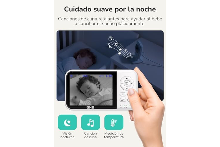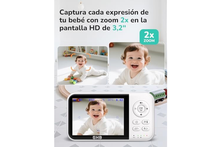 GHB Camara Vigilancia Bebe Vigilabebes con Camara con Pantalla 3.2" HD de 2100mAh Recargable VOX, Visión Nocturna, Despertador, Conversación Bidireccional Escucha Bebes