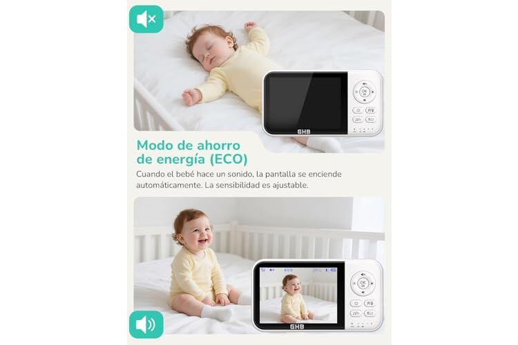 [2100mAh de la batería recargable] En el modo ECO, duerme automáticamente el vigilabebes con camara para ahorrar energía. Cuando hay un sonido en la habitación del bebé, la pantalla se activa automáticamente