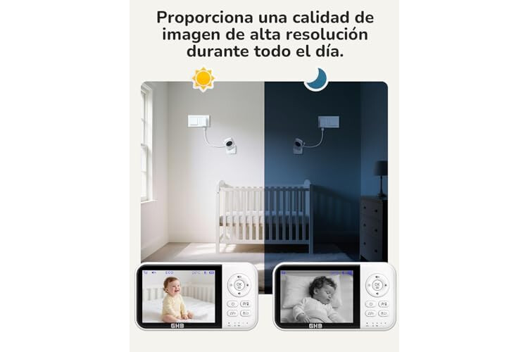 [Pantalla de 3,2 pulgadas]GHB camara vigilancia bebe está equipado con una excelente pantalla HD que permite una visualización de 360° y es superior en comparación con las pantallas tradicionales. Ya sea durante el día o con poca luz, la pantalla HD le ofrece una visión clara y una sensación sin preocupaciones para tener una visión clara del mundo de su bebé