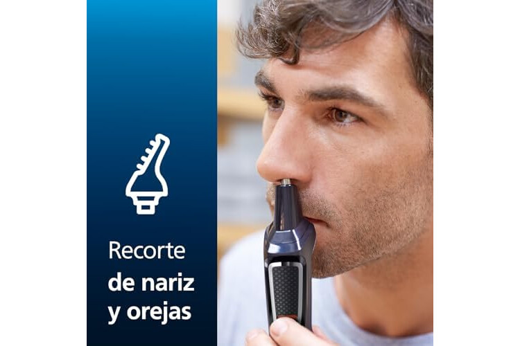 Mantén el pelo de la nariz y las orejas a raya: evita rasguños y cortes, ya que el recortador todo en uno elimina rápidamente el vello no deseado de la nariz y las orejas.