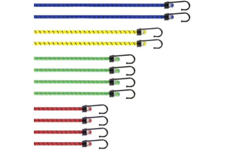 Gomas Elásticas Resistentes: Nuestras cuerdas elasticas con gancho cuenta con un revestimiento de tela y ganchos de acero. Son muy resistentes y duraderas para usar en una gran variedad de situaciones.