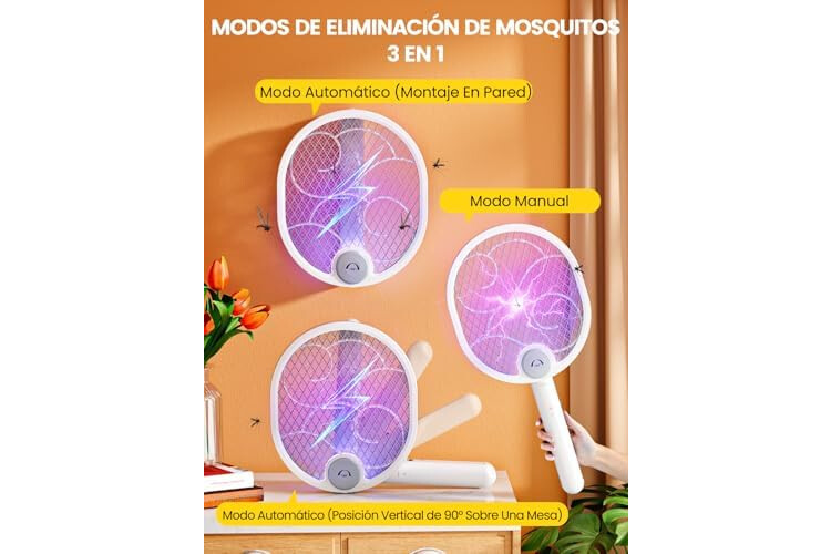 Matamosquitos portátil plegable: El matamosquitos portátil WOCVRYY se puede utilizar a mano, doblado a 90° sobre la mesa, o doblado a 180° y colgado en la pared. El matamoscas eléctrico se puede plegar en la bolsa, ahorrando espacio, muy portátil, adecuado para usar en el hogar, jardín, viajes, campamentos, etc.