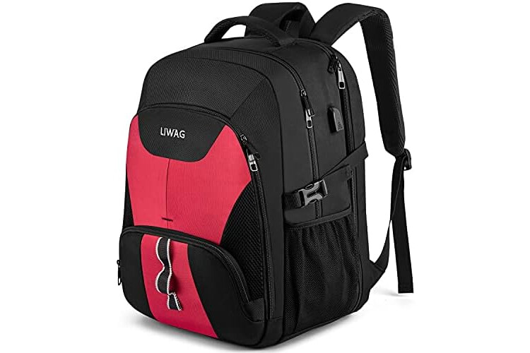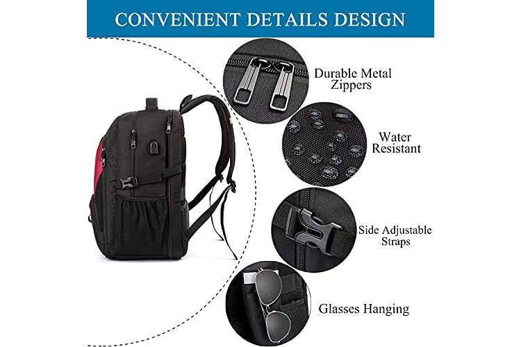 LIWAG Mochila Mujer Grande 50L Mochila Portatil 17 Pulgadas Impermeable Antirrobo Mochila Ordenador Portatil con Puerto USB Bolsa para Negocio Trabajo Diario Viaje Diario Escolares - Rojo