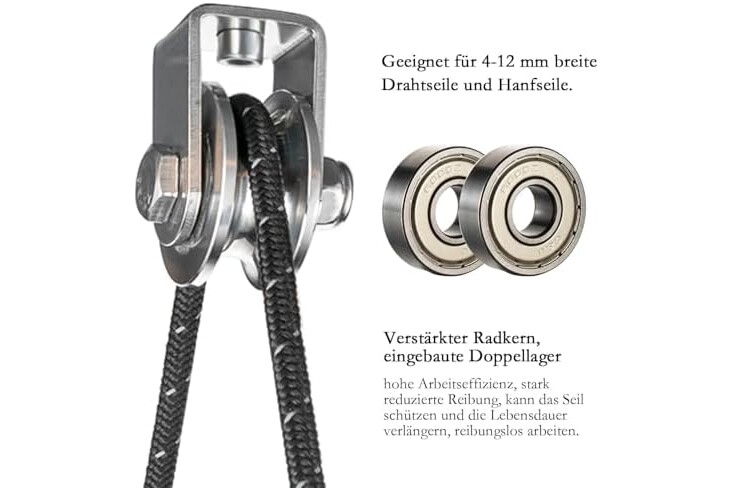 Materiales de alta calidad: toda la polea está hecha de acero inoxidable de alta calidad y los rodamientos están hechos de acero inoxidable de alta resistencia. Alta resistencia, resistencia a la corrosión, fuerte rendimiento antioxidante.
