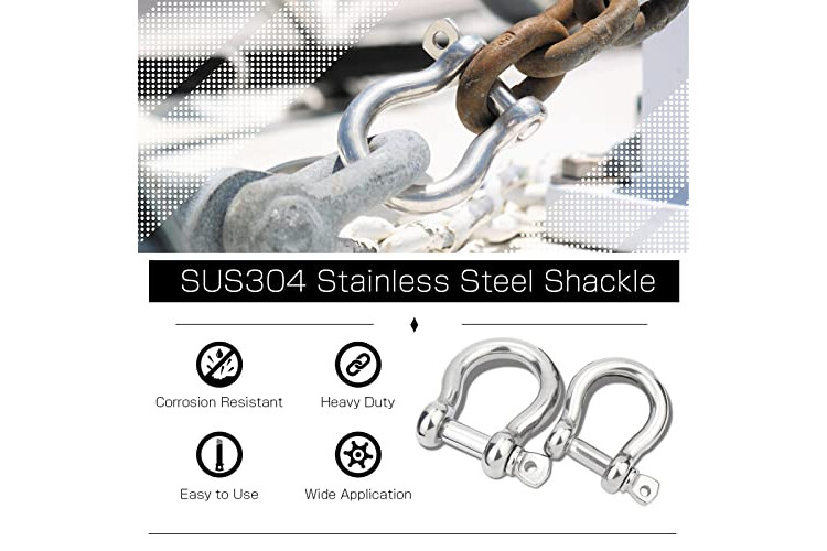 Grillete de arco de alta calidad: considerando proporcionar una conexión estable y confiable entre el grillete y otros, elegimos acero inoxidable de alta calidad para este grillete de arco. Estos serán los accesorios de conexión ideales. Sería resistente a la corrosión y a la abrasión, funciona bien en ambientes húmedos y al aire libre. Funciona bien para usos marinos debido a su resistencia a la corrosión y al óxido.