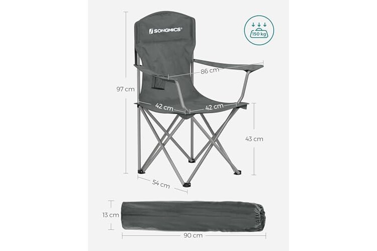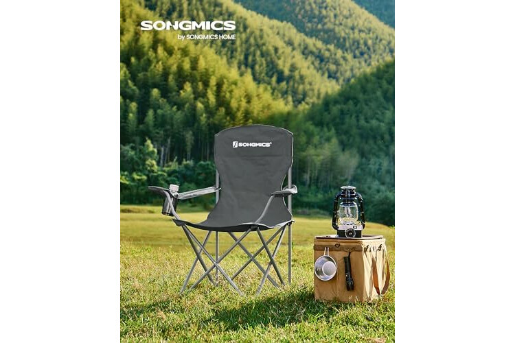 SONGMICS GCB008G01 - Juego de 2 sillas Plegables para Exteriores, Respaldo Alto, reposabrazos, Soporte para Bebidas, Plegable, soporta hasta 150 kg, para Camping, jardín, terraza, Color Gris Pizarra