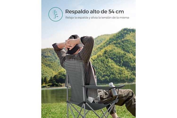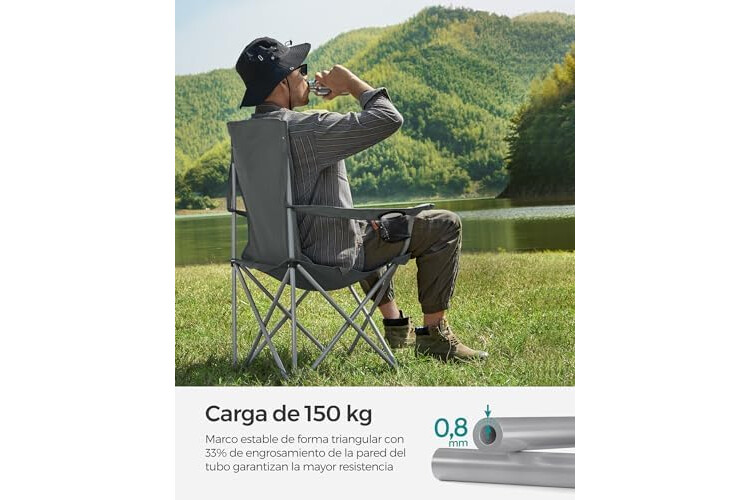 [Capacidad de carga de 150 kg] Marco de acero, tubos de 0,8 mm de grosor, muy resistente; tela Oxford 600D con revestimiento resistente al agua, extra resistente al desgaste y duradero. La silla de camping soporta hasta 150 kg