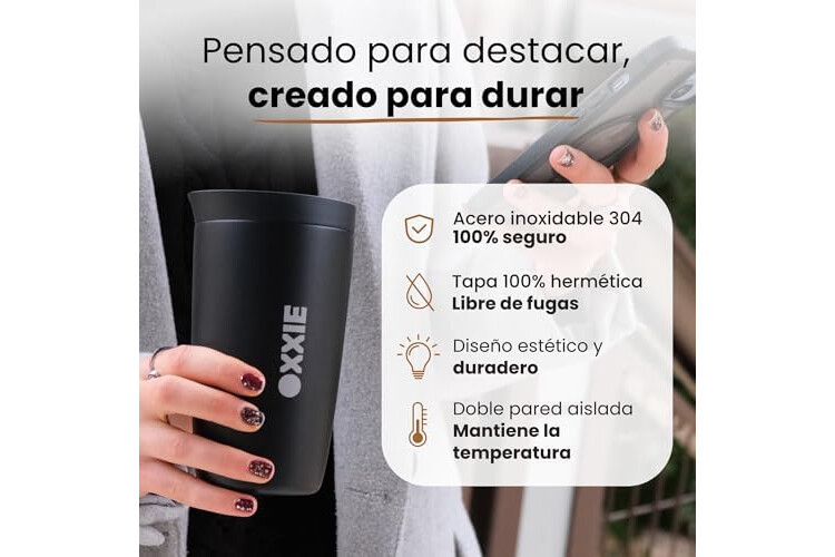 ☕ MANTEN LA TEMPERATURA IDEAL: Disfruta de tu café o té favorito a la temperatura perfecta con el OXXIE Vaso Térmico Para Café. Aislamiento de doble pared para 12 horas de FRÍO y 6 horas de CALOR.