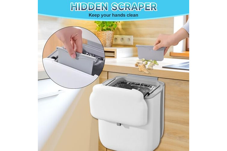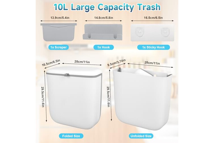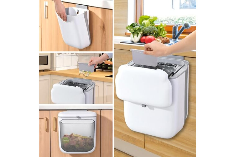 PGonline Cubo Basura Cocina Colgante 10L, Papelera Cubos Basura Plegable, Cubo de Basura Colgante con Tapa, para Cocina, Camping, Caravana, Coche, Baño, Oficina, Dormitorio
